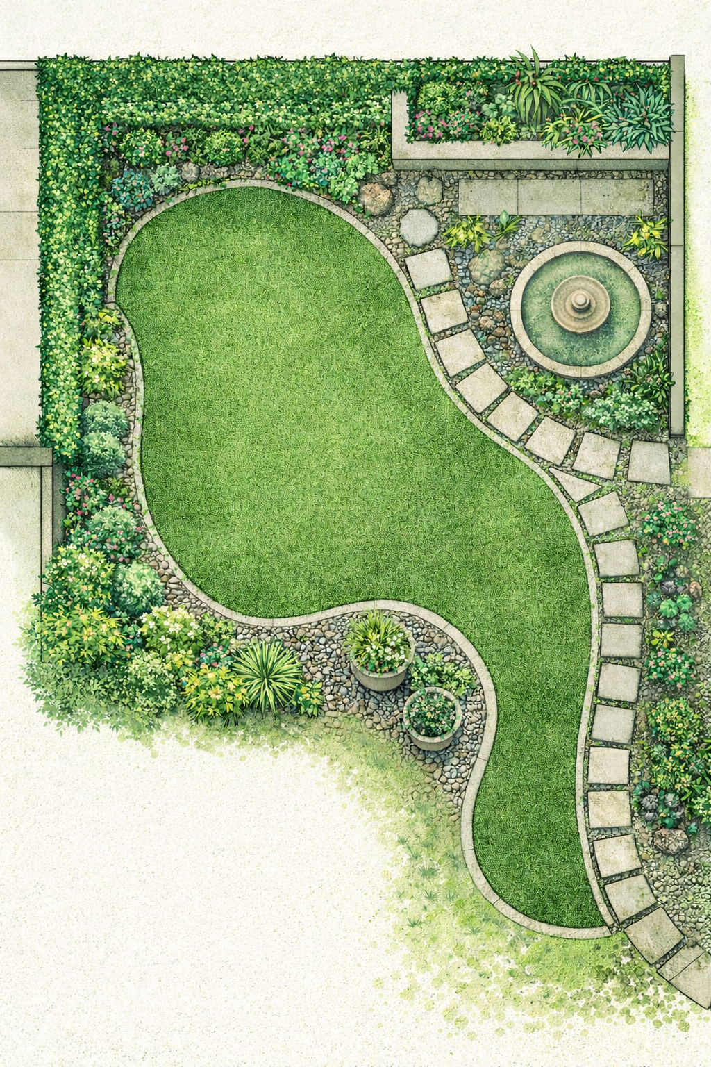Un buen diseño de jardín con pasto sintético considera formas orgánicas, bordes bien definidos, vegetación complementaria y elementos como senderos o maceteros. El objetivo es que el pasto sintético se integre al conjunto y no se vea como una superficie artificial aislada.